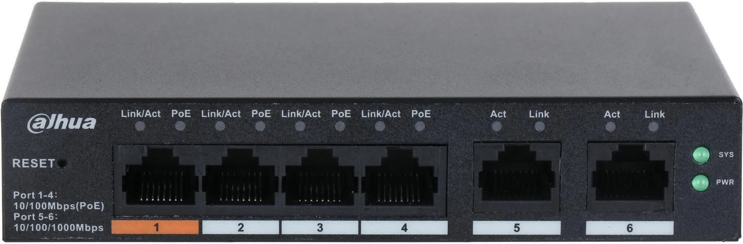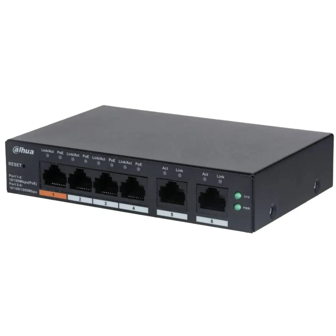 - عدد المنافذ: 6 منافذ (4 PoE + 2 Uplink)
