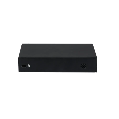 يحتوي على 6 منافذ RJ45 بسرعة 10/100 ميجابت/ثانية، منها 4 منافذ تدعم تقنية PoE لتشغيل كاميرات المراقبة مباشرة، بالإضافة إلى منفذين Uplink لربط الشبكة أو جهاز التسجيل NVR.
