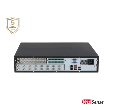 مسجل فيديو رقمي متقدم من شركة داهوا ضمن سلسلة WizSense، يدعم تركيب وتشغيل 16 قناة فيديو تناظرية بالإضافة إلى كاميرات IP (حتى 32 قناة إجمالًا) بتقنية Penta‑brid، مما يعني أنه يقبل أنواعًا متعددة من الكاميرات التناظرية (HDCVI, TVI, AHD, CVBS) وكاميرات الشبكة ضمن نفس النظام. يوفر المسجل تسجيلًا بدقة تصل حتى 4K وجودة عالية في العرض والتخزين، مع استخدام تقنيات ضغط ذكية لتقليل استخدام التخزين وتحسين الأداء. كما يحتوي على ميزات ذكاء اصطناعي مدمجة مثل SMD Plus (تمييز الأشخاص والمركبات)، حماية محيطية (التحذير عند عبور خطوط أو دخول مناطق)، كشف الوجوه والتعرف على الوجوه على قنوات معينة، إضافة إلى QuickPick 2.0 لتسهيل استرجاع المقاطع المهمة بدقة. منافذ العرض المتعددة تشمل HDMI وVGA لدعم شاشات حتى دقة 4K، مع إمكانيات للنسخ الاحتياطي عبر USB أو الشبكة وواجهة استخدام مرنة للعرض المحلي والتحكم عن بُعد.