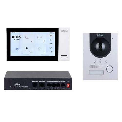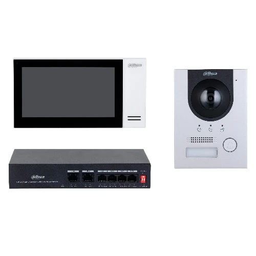 طقم Dahua DHI‑KTP01L(S) (F) هو نظام إنتركوم فيديو شبكي متكامل مصمم لتأمين المداخل في الفيلات والمنازل والمكاتب، يجمع بين وحدة باب خارجية (IP Villa Door Station) وشاشة داخلية ذكية مع مفتاح PoE للتركيب السهل وتغذية الطاقة عبر الشبكة. يتميز الجهاز الخارجي بكاميرا CMOS بدقة 2 ميجابكسل مع مجال رؤية واسع للإضاءة المنخفضة، واتصال صوتي وفيديو ثنائي الاتجاه مع الزوار، ودعم فتح الباب عن بُعد عبر الشاشة أو تطبيق الهاتف الذكي. الشاشة الداخلية توفر عرض فيديو واضح 7 بوصات بلمس سعوي، وتدعم إدماج التنبيهات والتحكم في الإنذارات. كما يتضمن الطقم PoE Switch لتوصيل الطاقة عبر شبكة Ethernet بسلاسة لتقليل تمديدات الكابلات.
