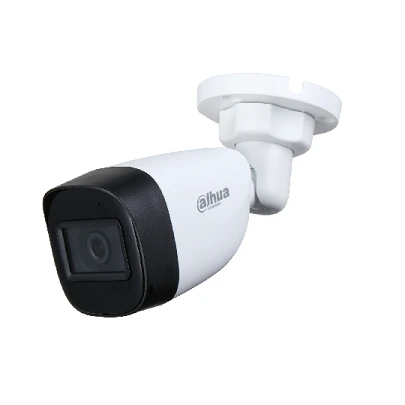 كاميرا مراقبة خارجية من نوع Bullet عالية الجودة من شركة Dahua بدقة 5 ميجابكسل تنتمي لسلسلة Lite Starlight، وتصميمها يعطي جودة صورة واضحة وممتازة في مختلف الظروف. تدعم الكاميرا إخراج الفيديو عبر CVI/TVI/AHD/CVBS عبر منفذ BNC واحد، مما يجعلها متوافقة مع معظم أجهزة DVR/XVR. تأتي مزودة بـ ميكروفون مدمج في النسخة التي تحمل اللاحقة ‑A لالتقاط الصوت، وتوفر رؤية ليلية قوية حتى 30 مترًا بفضل تقنية Smart IR التي تحسن الإضاءة في الظلام. الكاميرا مصممة لتحمل الظروف الخارجية بفضل مقاومة الطقس بمعيار IP67.