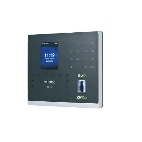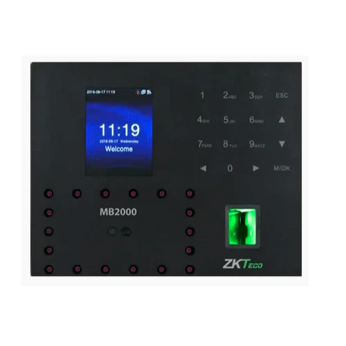 جهاز ZKTeco MB2000 هو محطة ذكية متعددة المهام لإدارة الحضور والانصراف والتحكم في الوصول، يجمع بين تقنيات التعرف على الوجه، وبصمة الإصبع، وبطاقة الهوية (RFID) لضمان أمان عالي ودقة في التحقق من الهوية. بفضل خوارزميات متقدمة وتقنيات تحقق سريعة، يمنحك هذا الجهاز تجربة عملية سلسة حتى مع الأصابع الرطبة أو الخشنة ويعمل بفعالية في ظروف الإضاءة المختلفة. يتميز بشاشة TFT ملونة قياس 2.8 أو 4.3 بوصة، وقدرة تخزين حتى 100,000 سجل للعمليات، ويدعم صلات TCP/IP و USB Host و Wi‑Fi اختياري. كما يمكنه التكامل مع أنظمة التحكم في الأبواب والأقفال الكهربائية مما يجعله مناسبًا للشركات والمؤسسات الصغيرة والمتوسطة والكبيرة.